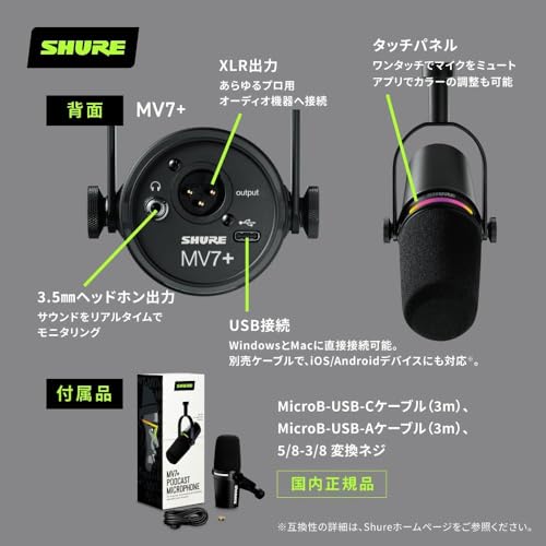 Shure MV7+ 一択です。マイクに詳しくない人でも放送品質の音声で録音することができます。