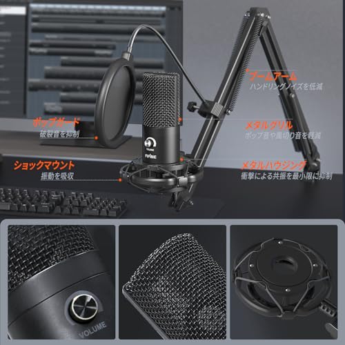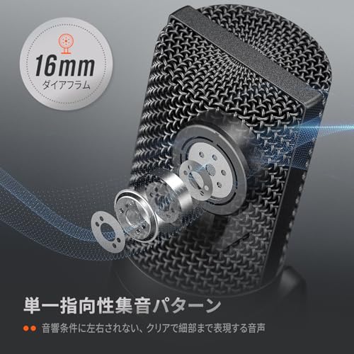 さらに、振動を吸収してくれるショックマウントとボフボフとした吐息をカットしてくれるポップガードも内臓、後発メーカーの強みがしっかり出ています。スーパーカーディオイドという特性で、マイク横方向の音を拾いにくくなっています。